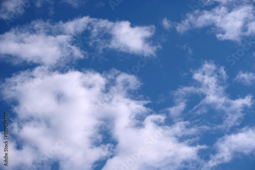 © DyMaxFoto, Fototapeta premium Background from clouds. Beautiful celestial landscape with beautiful white clouds high in the sky