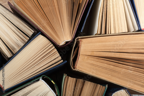 © lana_u, Fototapeta premium Background from old and used hardback books.