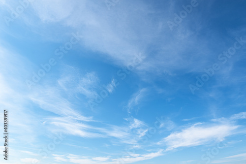 Obraz premium Background gradient blue sky with fluffy light white clouds. Natural...