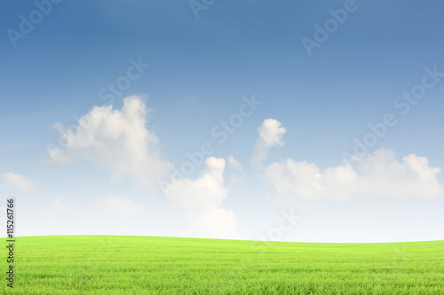 © buraratn, Fototapeta premium Background green grass and blue sky