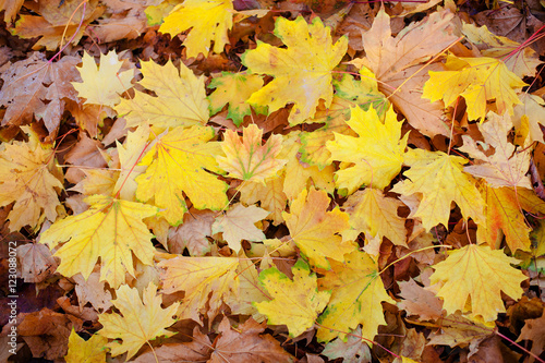 Obraz premium Background group autumn orange leaves. Outdoor.