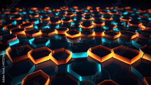 © sana, Obraz premium background hexagon with glowing lights