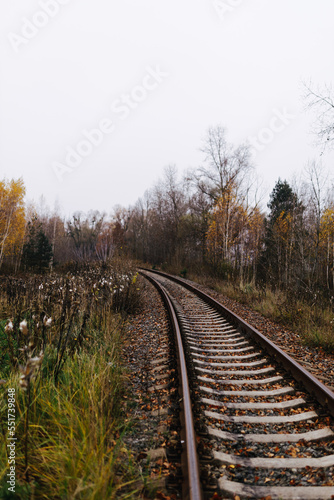 © Yevhenii Lashevskyi, Fototapeta premium background image of a railway track