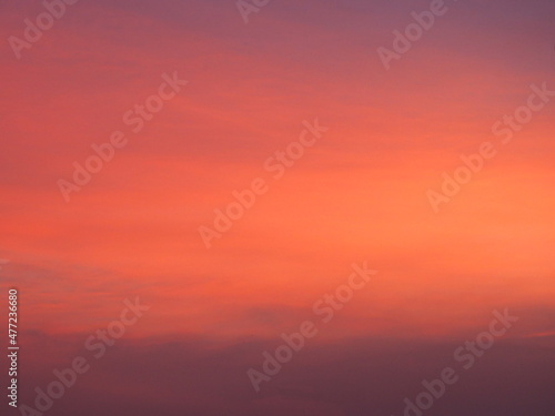 © Vanchuree, Naklejka premium Background image of sky with beautiful pastel pink and orange clouds in the evening as the sun sets. calm sky in winter evening