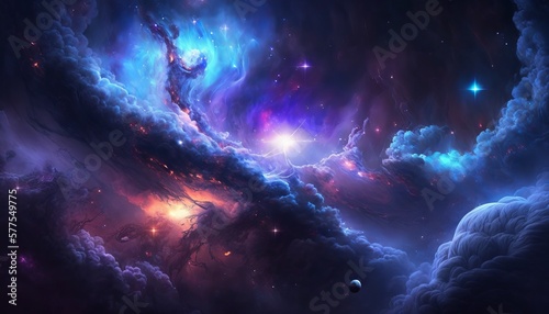 Fototapeta premium background image with a mix of blue and purple colors, resembling a galaxy or space theme. Generative ai