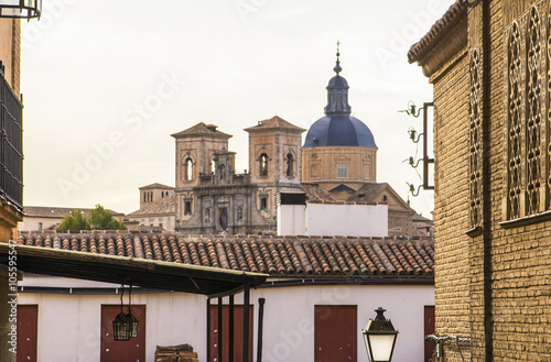 Obraz premium background landscape view of the street and a beautiful church in Toledo at...