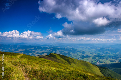 © zyoma_1986, Naklejka premium Background landscape with Ukrainian Carpathian Mountains in the Pylypets