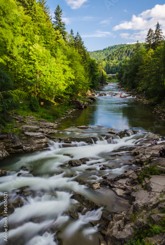 © thaarey1986, Obraz premium background landscape with waterfall in Yaremche vilage in Ukraine