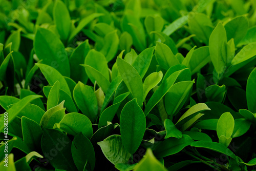 © Pongsatorn, Obraz premium Background nature banyan tree bush, The tree decorate in the garden.
