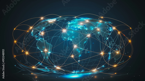 Fototapeta premium background network points Earth's surface wave background Abstract digital...