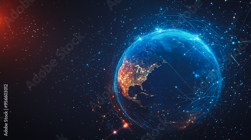 Obraz premium background network points Earth's surface wave background Abstract digital...