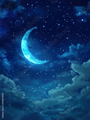 Fototapeta premium Background night sky of with crescent moon,and stars .Background Greeting...