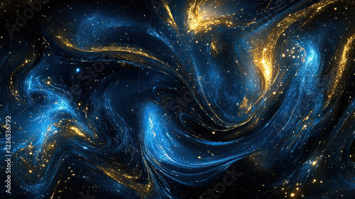 © Dream, Obraz premium background of abstract glitter lights. blue, gold and black. de focused. banner. High quality photo