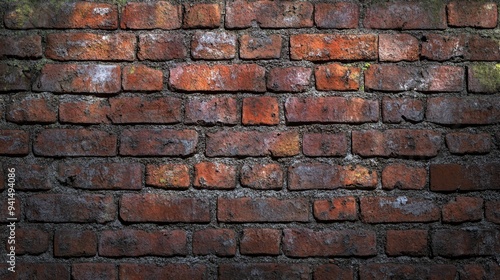 © Matcha_09, Obraz premium Background of an unfinished brick wall with visible mortar and rough textures, showing the work in progress