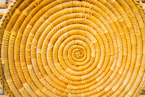 © de Art, Fototapeta premium background of bamboo branches fence wicker basket straws