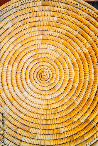 © de Art, Fototapeta premium background of bamboo branches fence wicker basket straws