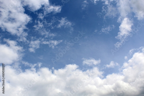 © DENIS , Fototapeta premium Background of blue bright sky with dark clouds.
