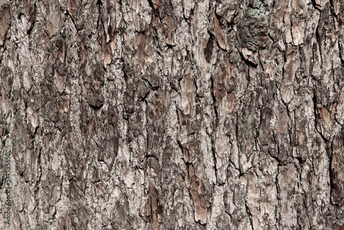 © vveronka, Naklejka premium Background of brown tree bark with moss, close-up. Relief natural texture of oak trunk for publication, screensaver, wallpaper, postcard, poster, banner, cover, website, post. High quality photo