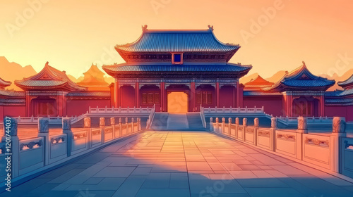 © AdolescentChat, Fototapeta premium Background of Chinese traditional ancient architecture palace under sunset