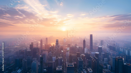 © eliot, Fototapeta premium background of city skyline panorama under fisheye lens