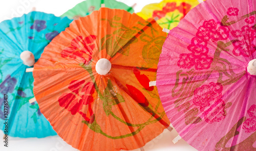 © Snowbelle, Obraz premium Background of cocktail paper umbrellas.