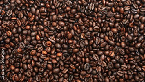 © surasak, Fototapeta premium background of coffee beans. top view of coffee beans texture.