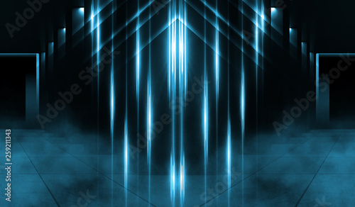 Fototapeta premium Background of empty room with concrete pavement. Spotlight, neon