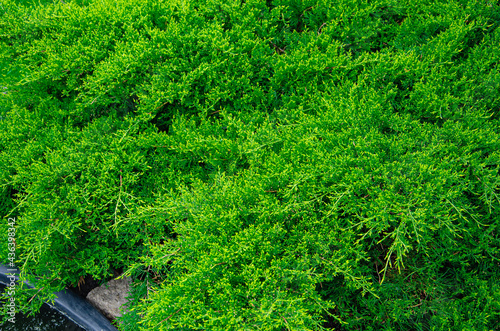 Fototapeta premium Background of evergreen juniper bushes. Natural pattern