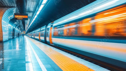 © AdolescentChat, Fototapeta premium Background of fast shuttle on the platform of modern city subway
