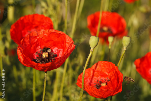 © FomaA, Obraz premium Background of flowering red poppies close-up