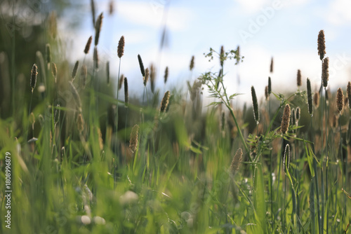 © kichigin19, Naklejka premium background of fresh green grass, nature in the field