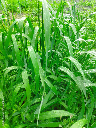 Fototapeta premium Background of green grass with dew drops