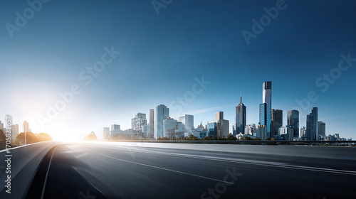 © eliot, Naklejka premium background of modern city and road with tech lines