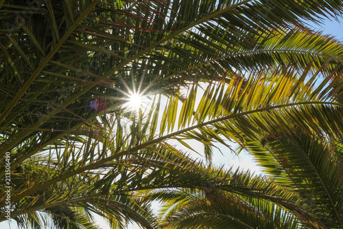 Fototapeta premium background of palm leaves and blue sky