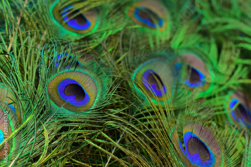 Naklejka premium Background of peacock tail in bright colours (Shallow DoF)