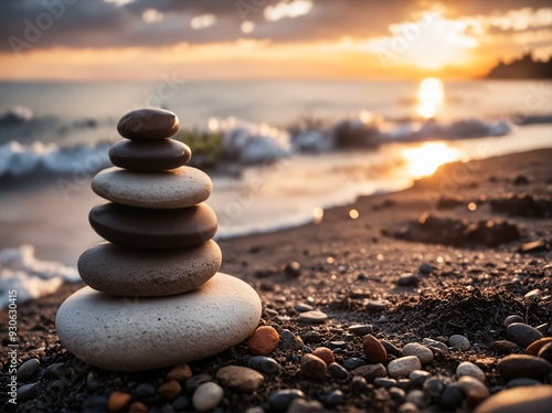 Fototapeta premium background of pebbles on the shore, zen tranquility