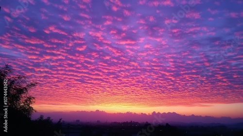 Fototapeta premium Background of pink and purple sky at sunset, thin floating clouds, warm atmosphere.