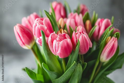 © Nell, Fototapeta premium Background of pink and white tulips in close-up.
