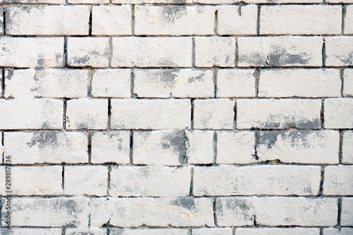 Obraz premium Background of retro brick wall. Texture of white brickwork. Bricks painted...