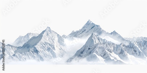 © Khoirul, Obraz premium Background of rocky snow mountain peaks on a white background.
