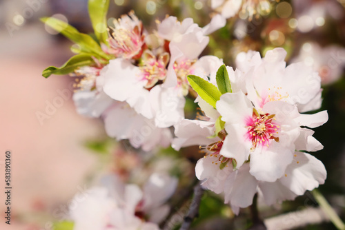 Fototapeta premium background of spring almond blossoms tree. selective focus