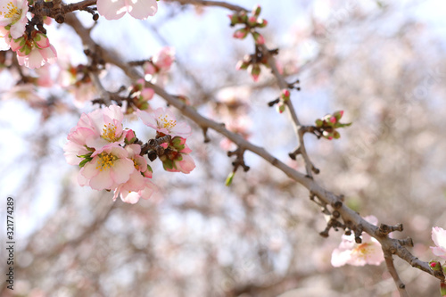 © tomertu, Obraz premium background of spring cherry blossoms tree. selective focus