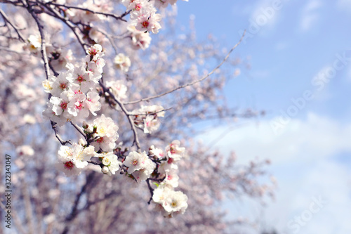 © tomertu, Obraz premium background of spring cherry blossoms tree. selective focus