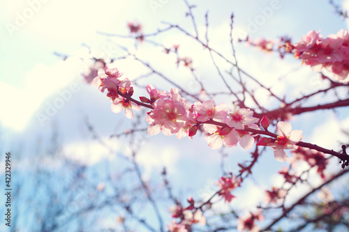 Obraz premium background of spring cherry blossoms tree. selective focus