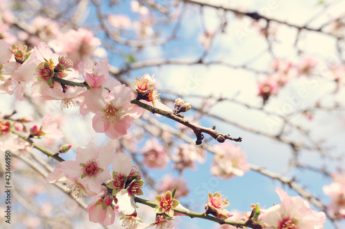 © tomertu, Obraz premium background of spring cherry blossoms tree. selective focus