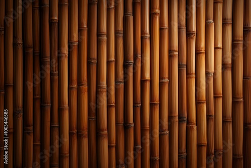 Fototapeta premium Background of tall bamboo stalks arranged vertically, displaying natural...