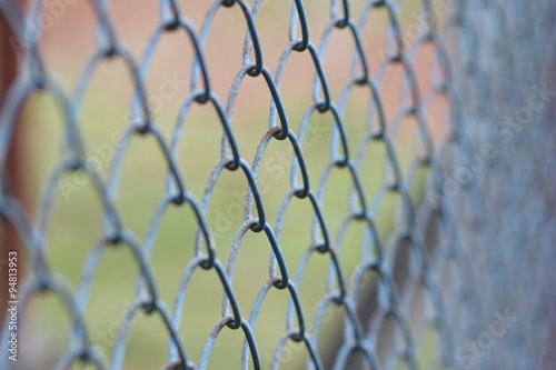 Fototapeta premium Background of the metal mesh fence, soft focus