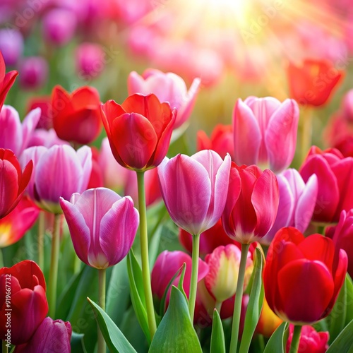 © tanvir, Fototapeta premium background of tulips of red and pink bright shades