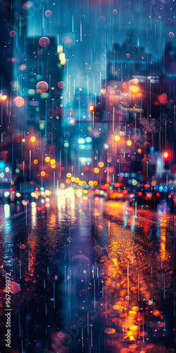 © Poramet, Obraz premium Background of wet asphalt with neon light Blurred background night lights reflection