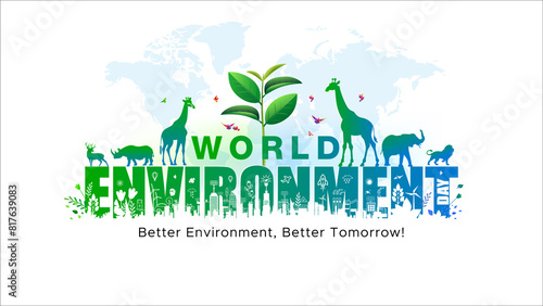 © New concept & ideas, Fototapeta premium Background of World Environment Day. Tree plant animals with eco environment and typography.
